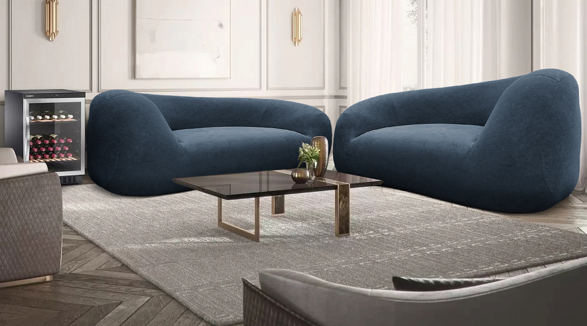 Прямой диван Вирджиния Синий велюр