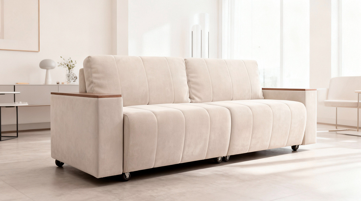 Прямой диван еврокнижка Осака Молочный велюр